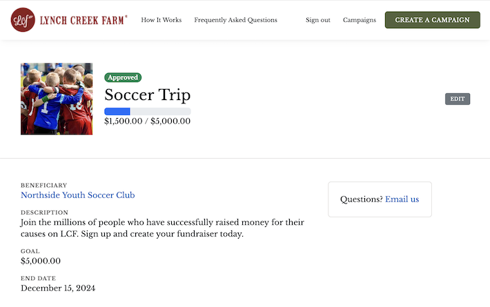 It is absolutely free to run an online fundraising campaign, and there are no minimum sales required! All funds raised will be dispersed within 60 days of the season ending. When you create your campaign you will choose to receive raised funds via a paper check by mail OR direct transfer via ACH.